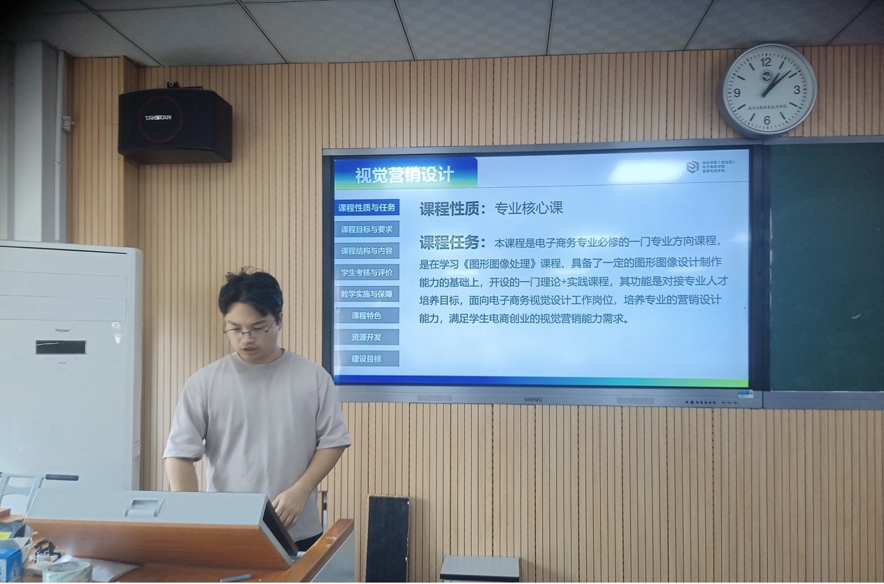 为持续推进内部质量保证体系有序运转,提升课程在育人中的基础作用。电子商务专业陈俊鹏、朱景伟、郑庆良老师分别围绕《视觉营销设计》《商务数据分析》《网店运营》等三门课程,就课程性质与任务、课程目标与要求、课程结构与内容、员工考核与评价、教学实施与保障、课程特色、资源开发、建设目标等与课程诊改相关的八个模块进行剖析。