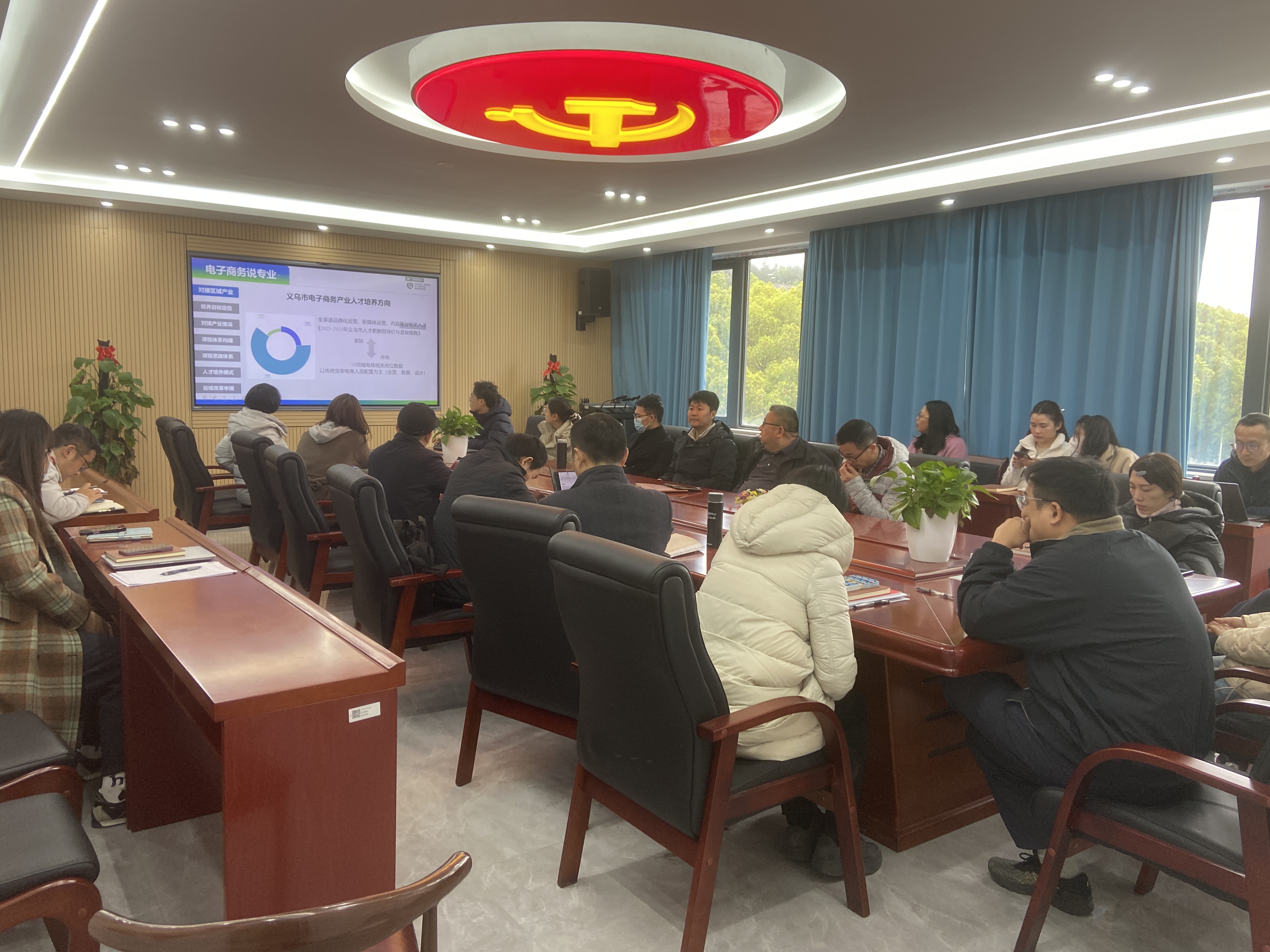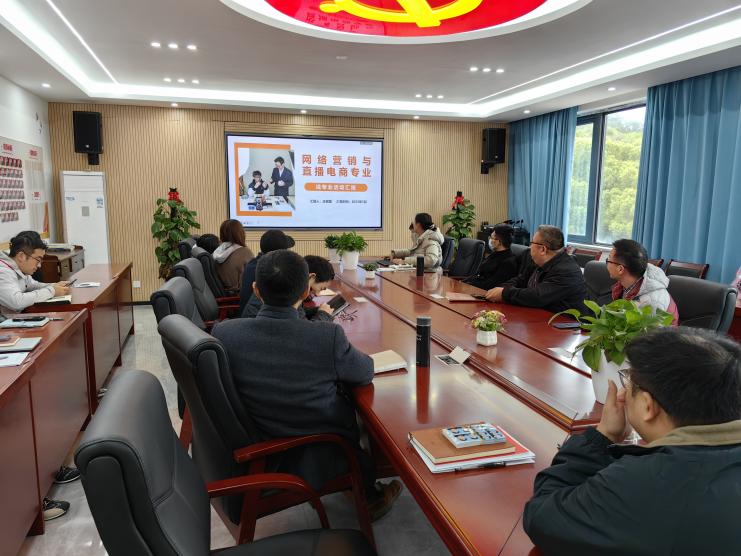在活动中,电子商务、商务数据分析与应用、跨境电子商务、网络营销与直播电商各专业主任着重介绍了基于职业教育类型特点,充分彰显产教融合育人要求,着重介绍专业对接的区域产业(链)情况、培养目标与定位、近三年专业对接产业的情况分析、专业对应产业的适度超前性体现、课程思政体系及实施路径、产教融合人才培养模式、后续改革举措等7个方面的内容。