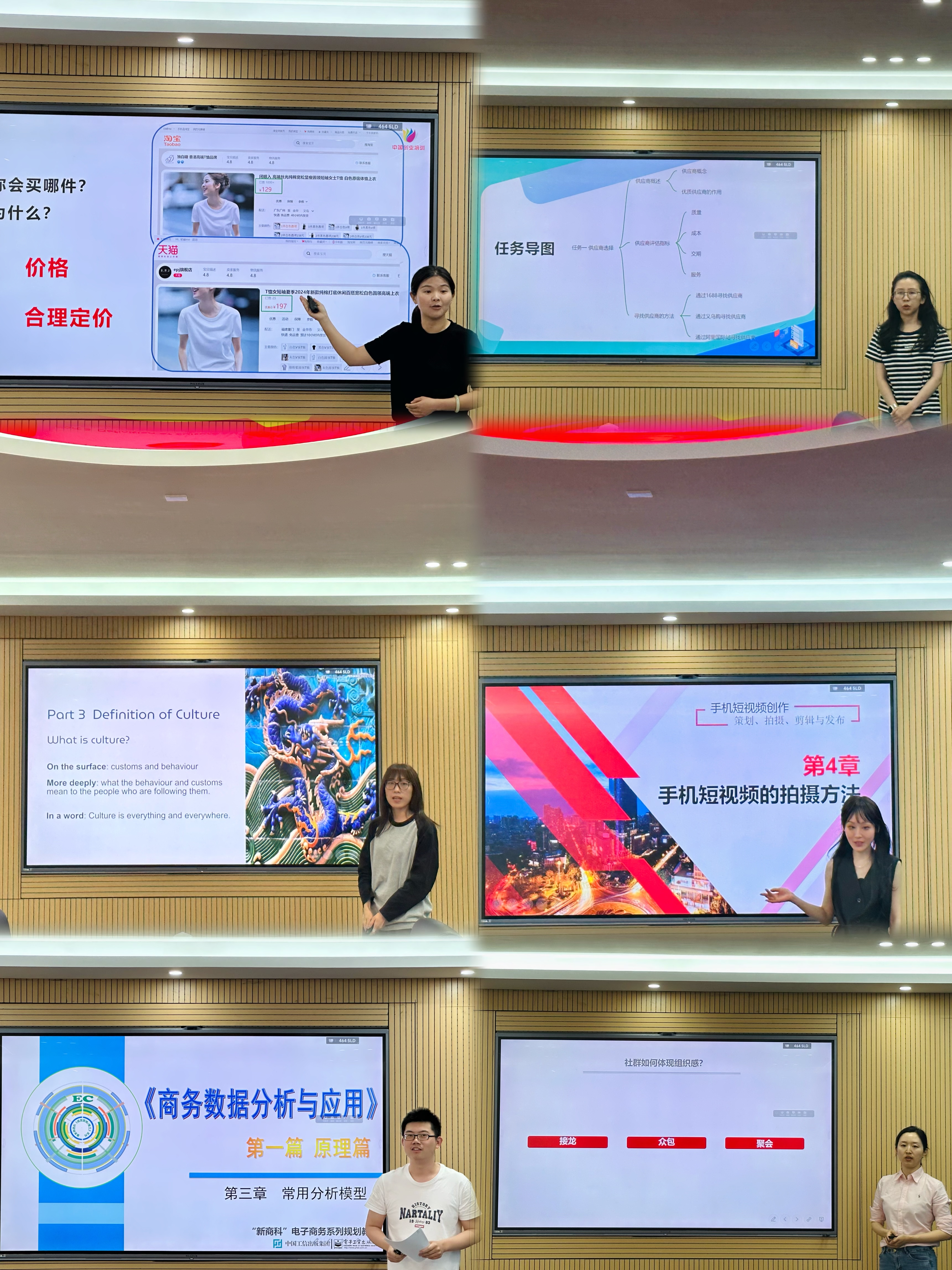 比赛中,青年教师们充分展现学科特色与教学智慧。陈青老师通过案例解析解释商品定价规则,引导员工思考如何合理定价;汪祯老师从员工学情出发,重难点突出,深入解读了跨境电商活动中供应商选择的规则和方法;杜渐老师通过模拟线下活动举办,指导员工从主题确认、活动策划、方案执行、人员邀请、现场调控、活动反思等方面完整的思考社群活动开展的流程;古清悠老师将“文化自信”的思政元素融入跨境电商文化与沟通,实现专业知识与职业素养的有机统一;彭乔老师从生活化的运用出发,利用案例讲解和实操相结合的教学方法,帮助员工理解短视频拍摄中景别的含义和运用;王昱文老师借助案例导入和图文并茂的可视化数据分析,解读直播电商产业经济环境数据背后的意义。参赛教师新颖的教学设计、扎实的专业功底和富有感染力的授课风格,充分体现了公司教师良好的专业素养和积极的精神风貌。