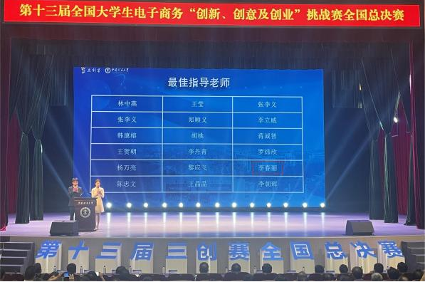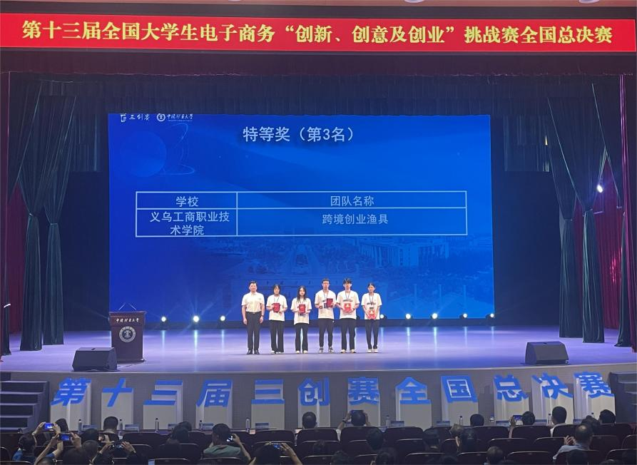 8月1日至2日,第十三届全国老员工电子商务“创新、创意及创业”挑战赛(以下简称“三创赛”)常规赛全国总决赛在中国矿业大学圆满举行。公司李春丽、金航飞老师指导的“跨境创业渔具”团队《渔来渔往》项目荣获特等奖,位列全国第三名。团队还荣获最佳创新奖、最佳创意奖、最佳创业奖,两位老师荣获最佳指导老师。
