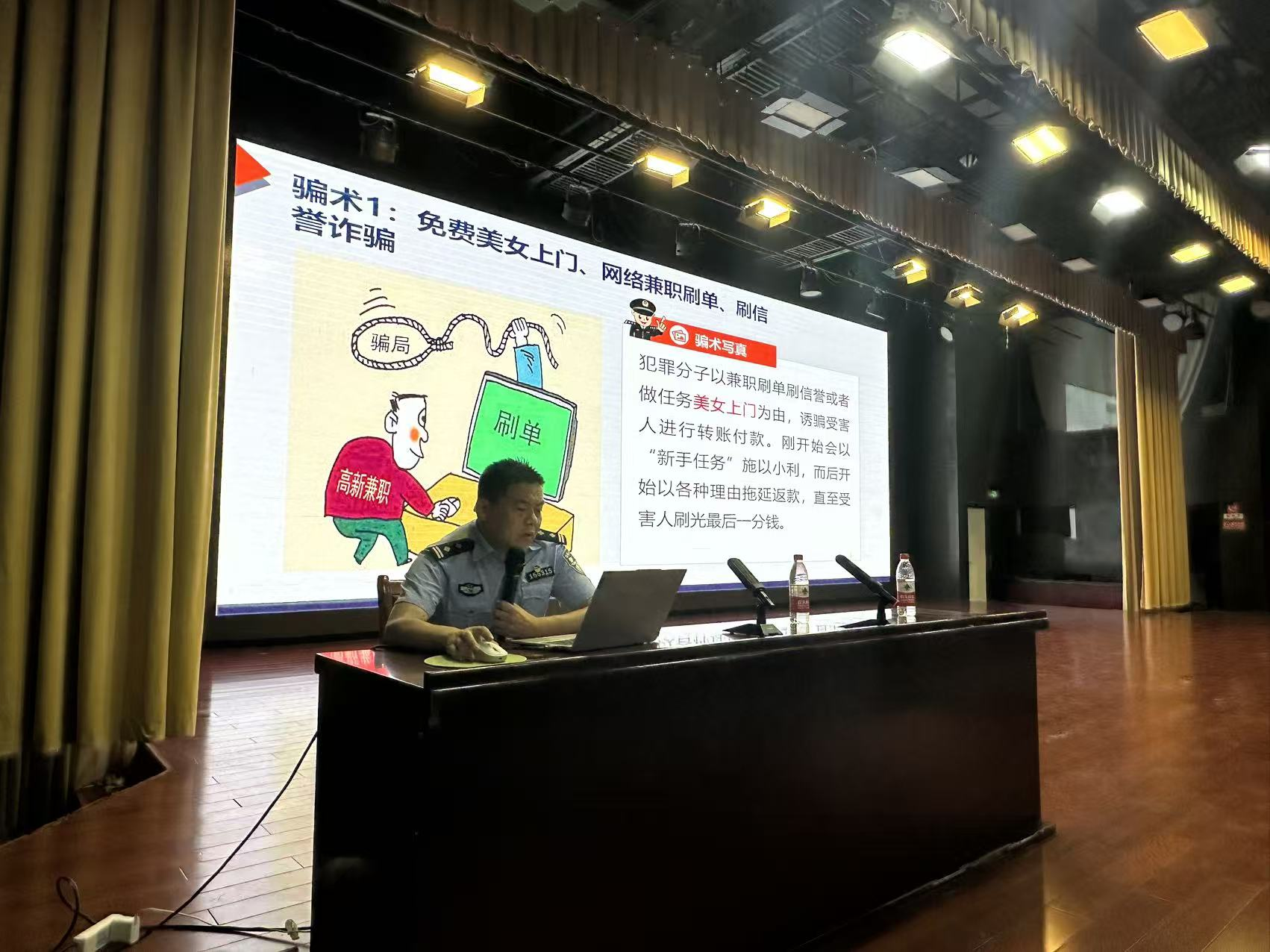 安全是成长的基石。为提升新生安全意识与自我保护能力,大会特别邀请江东派出所民警开展安全教育主题讲座。民警系统剖析兼职刷单、冒充客服、公检法等高发骗术,用真实案例全景传授识诈、防诈、反诈技能,为新生筑牢安全防线,守护青春与财产安全,让新生们受益匪浅。
