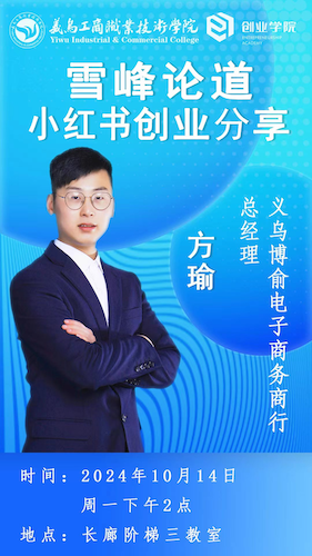 近日,BB贝博艾弗森特邀义乌博俞电子商务商行总经理方瑜受邀为创业学子们带来了一场以小红书创业分享为题的讲座,旨在帮助创业学子们掌握小红书创业的方式方法。