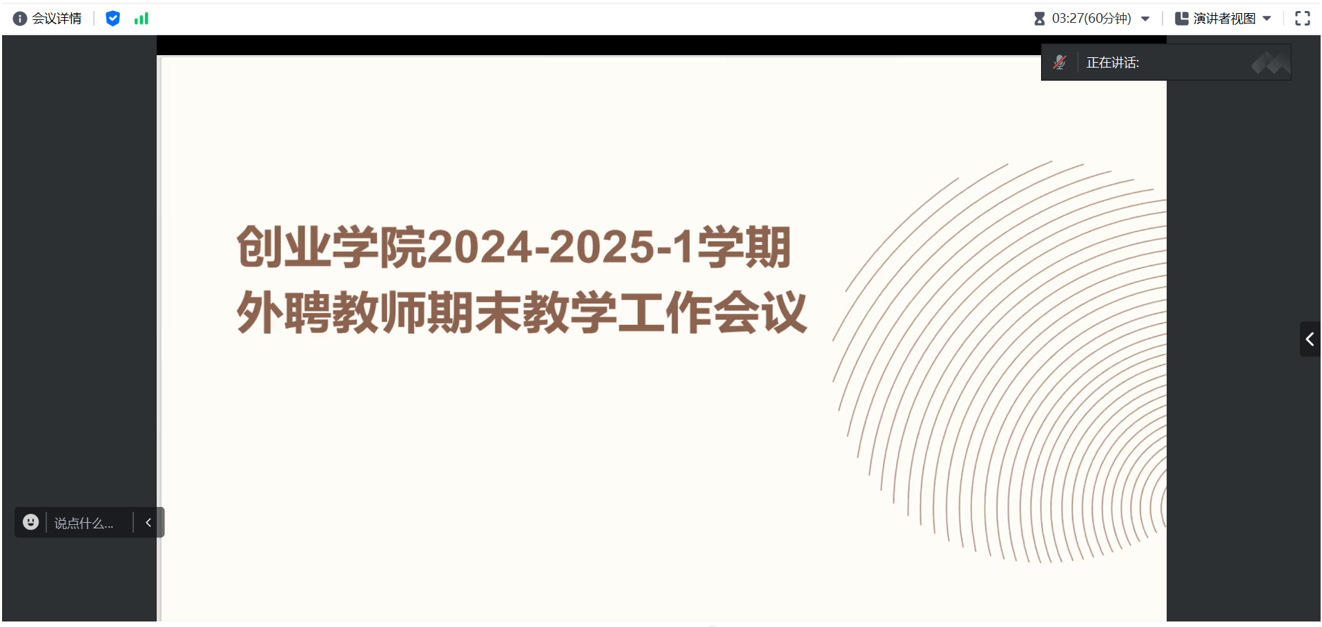 教学工作是中心工作,此次会议为外聘教师的期末教学工作指明了方向,明确了目标,希望兼职教师们能够继续发扬优良传统,不断创新教学方法,提升教学水平,并且以更加饱满的热情和更加务实的态度,迎接期末工作的挑战,为公司的发展和员工的成长贡献力量。
