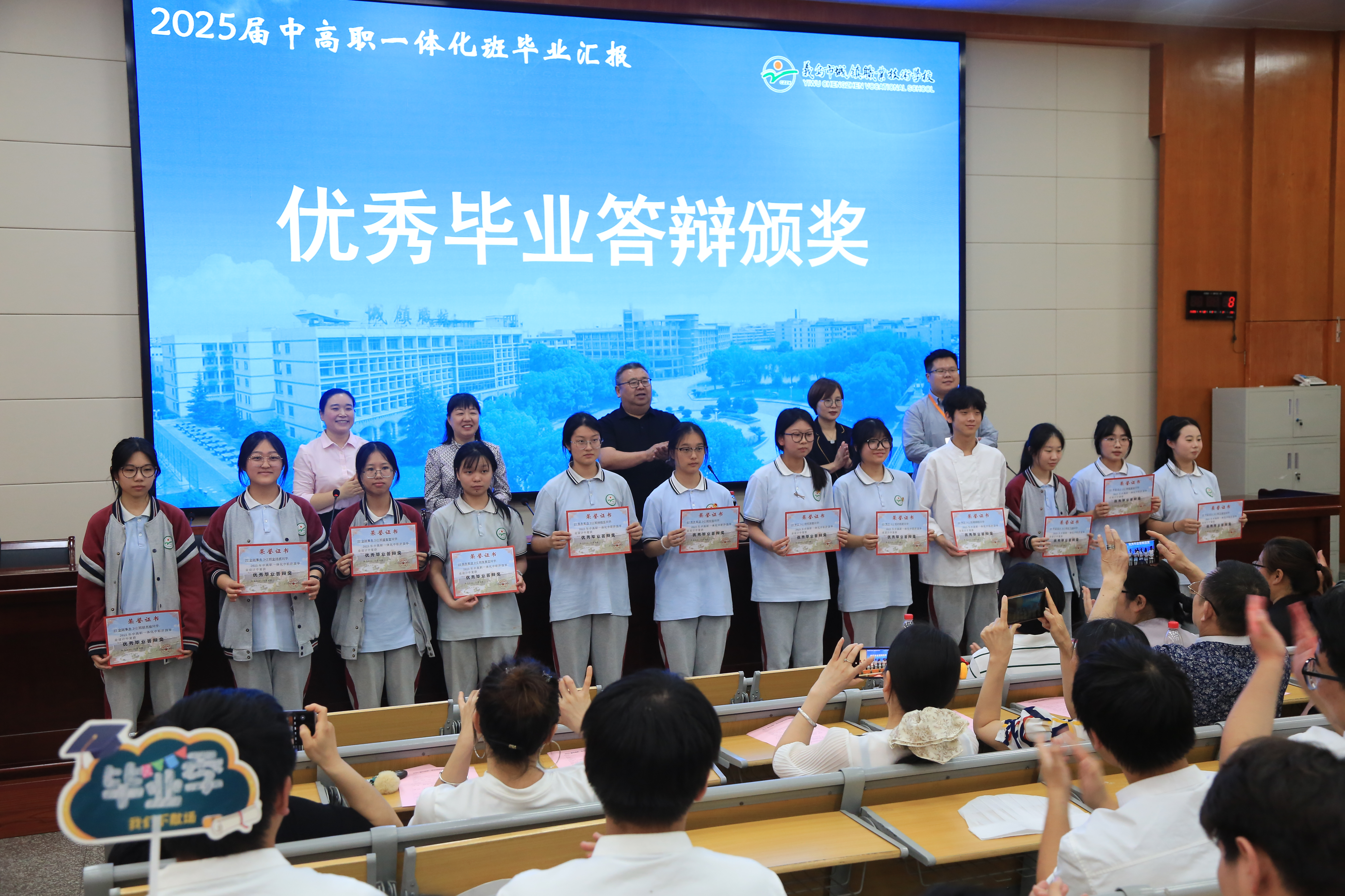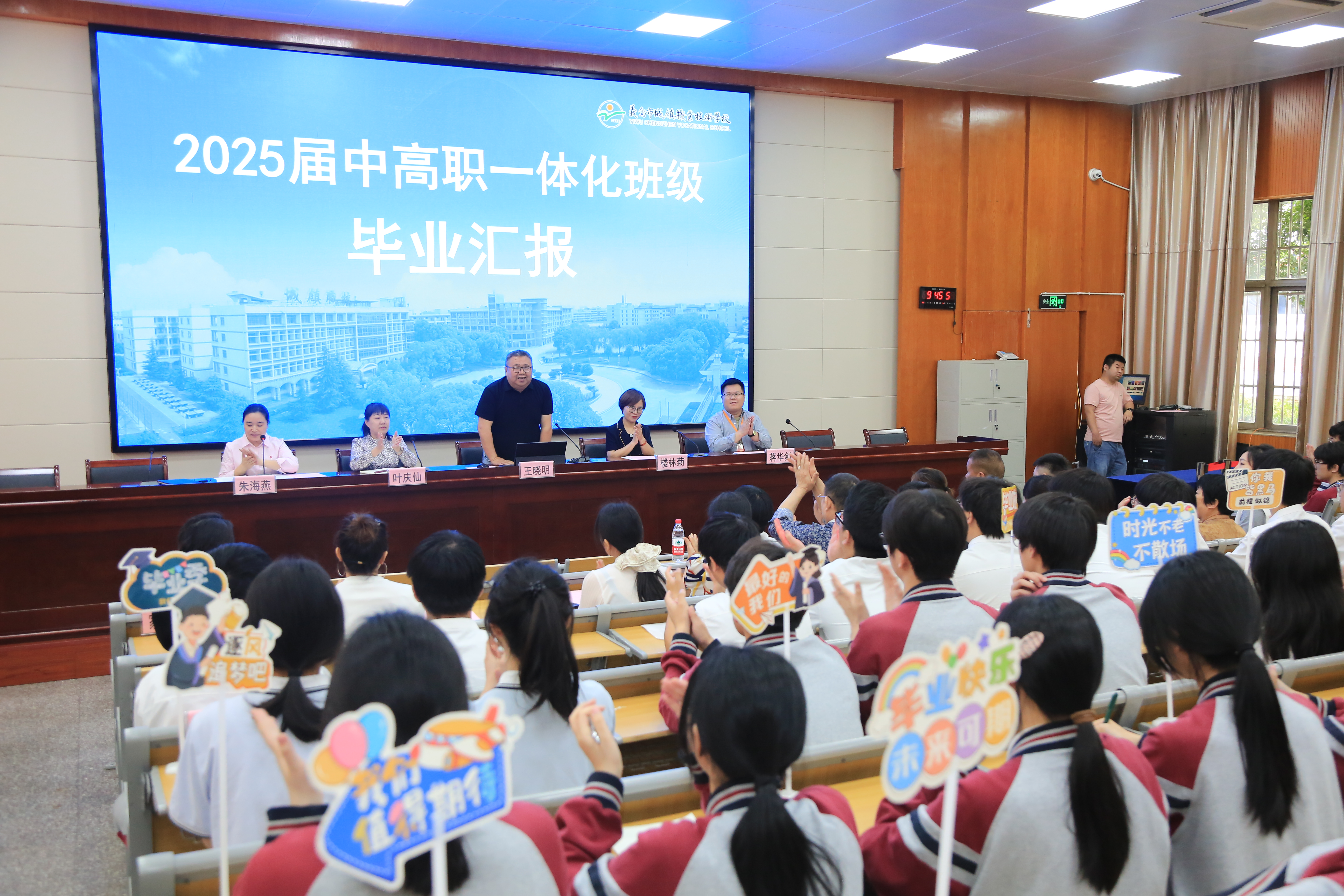 4月30日,义乌城镇职业技术公司为2025届中高职一体化毕业班组织了毕业汇报展示。经过三年专业学习,同学们硕果累累,他们以毕业总结的形式展现了属于自己的独特风采。现场听取毕业汇报的评委有董事长楼林菊、副董事长叶庆仙、教务处主任蒋华剑、副主任朱海燕、各毕业班班主任、优秀毕业生代表及部分家长代表。作为中高职一体化人才培养的合作院校代表,BB贝博艾弗森负责人受邀参加,并在现场进行了精彩点评。
