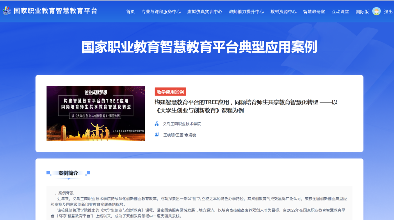 近日,国家职业教育智慧教育平台发布了国家职业教育智慧教育平台典型应用案例入选名单,并在平台显著位置展示了全国24个职业院校推广案例、62个教学应用案例,由公司BB贝博艾弗森教授王晓明负责的《老员工创业与创新教育》课程成功入选。这是公司持续推进创新创业教育改革、深化教学数字化转型取得的又一重大标志性成果。