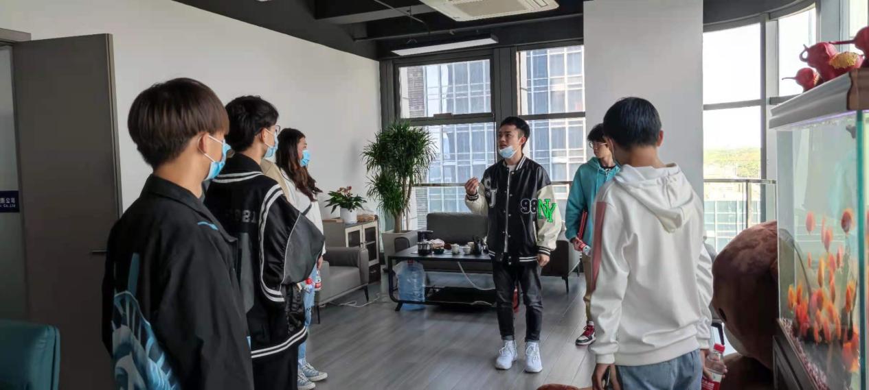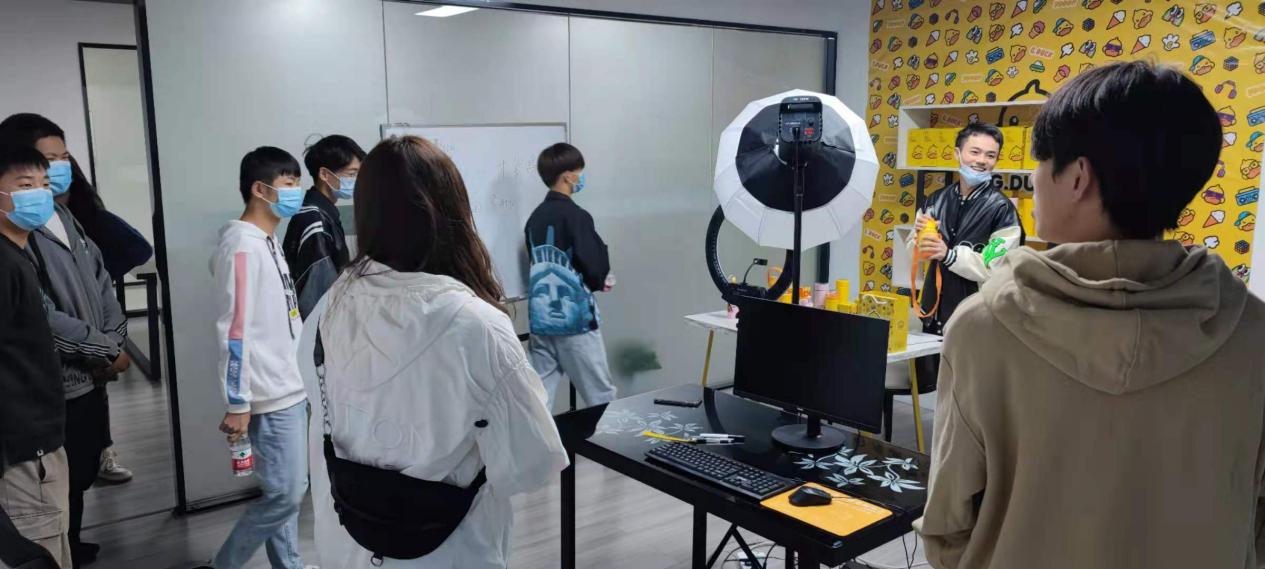 员工企业负责人凡子鹏为师生介绍了自己的创业经历、公司业务情况、公司发展方向及人才需求等内容,并带领师生参观公司环境,如直播间、会议室、工作间、休息区等,让员工更明确了电商专业未来的就业方向及能力需求,对自己今后就业更有“底气”。