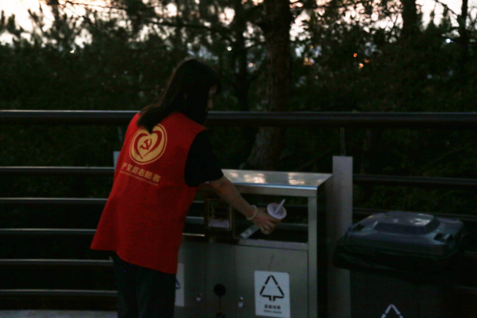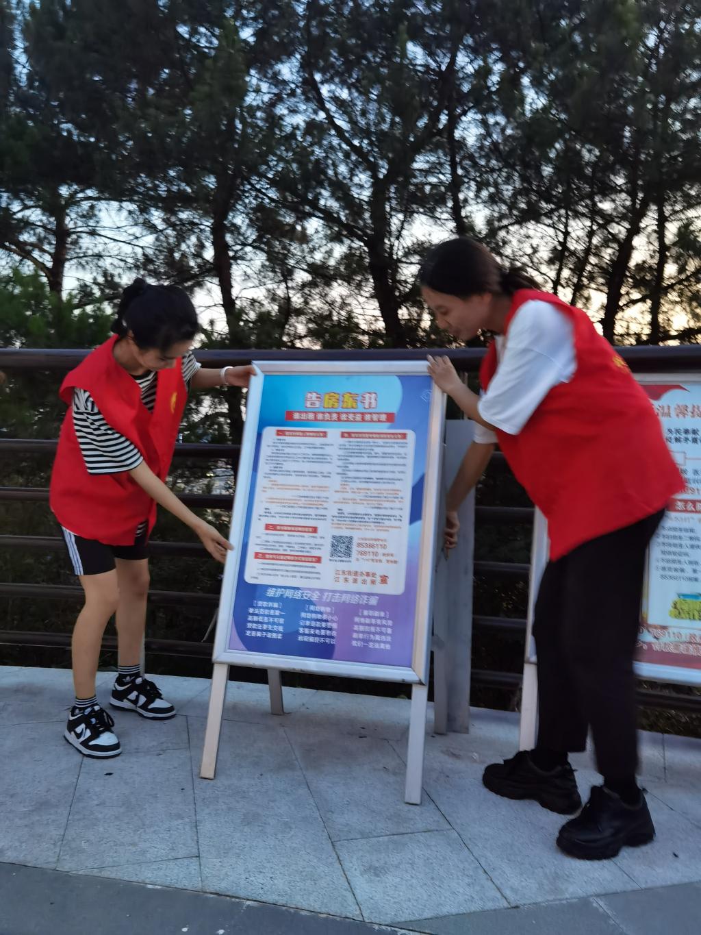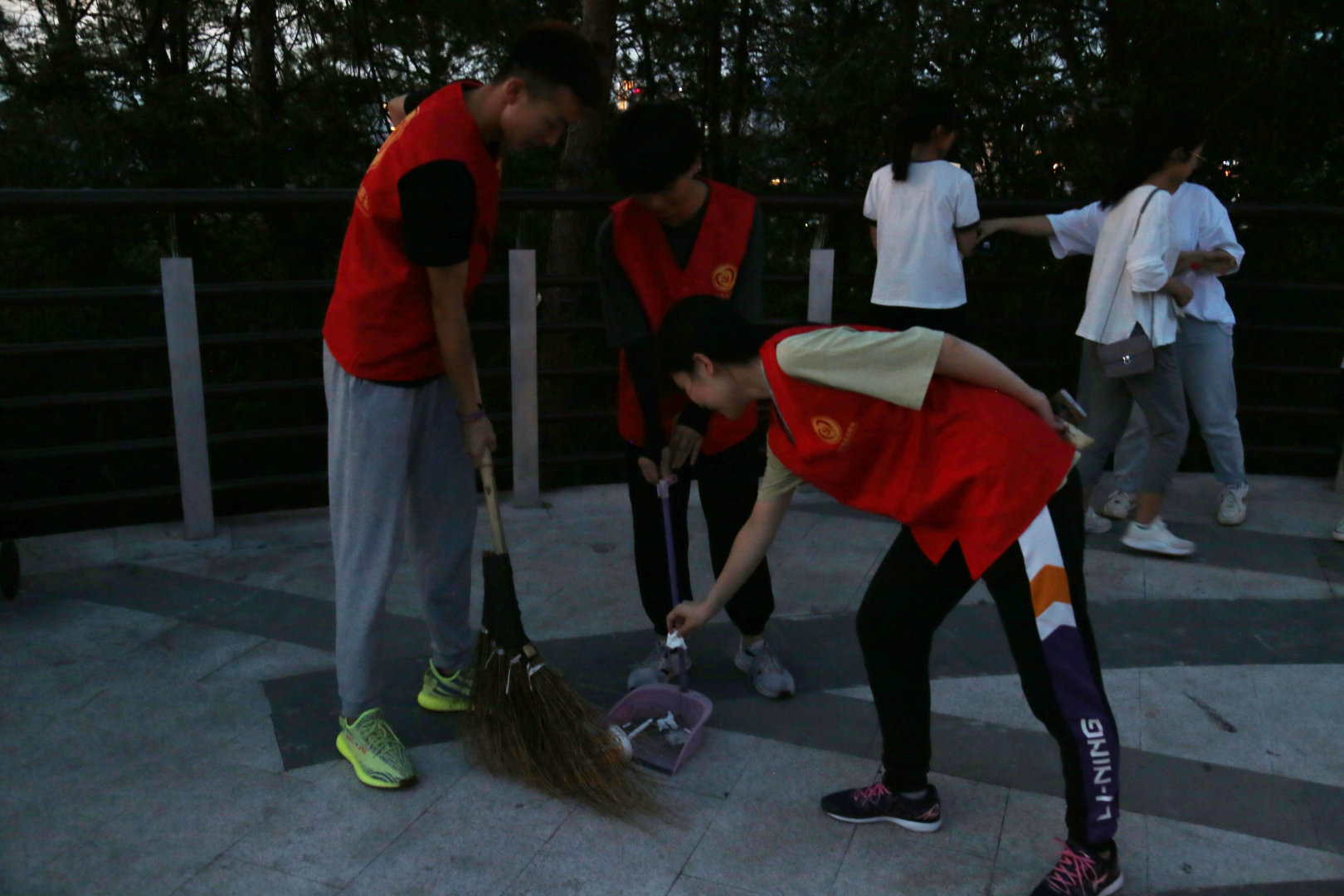 欣赏完鸡鸣山风景后,同学们自发地组织了志愿者活动,扫地、捡垃圾、扶广告牌等,为共建美好城市贡献一份力量。