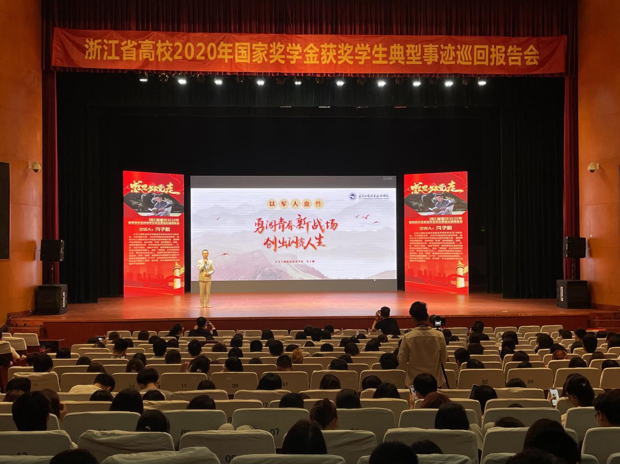 近日,“感恩跟党走”浙江省高校2020年国家奖学金获奖员工典型事迹巡回报告会在省内12所高校如火如荼地开展。公司BB贝博艾弗森凡子鹏同学代表公司,于5月26日、6月4日分别参加了浙江金融职业公司专场和衢州职业技术公司专场。本次活动通过先进典型的事迹分享,充分展示了国家奖学金获奖员工的风采,激励了广大青年学子为实现国家富强、民族复兴的伟大“中国梦”而奋发学习,坚定理想信念,担起时代责任。